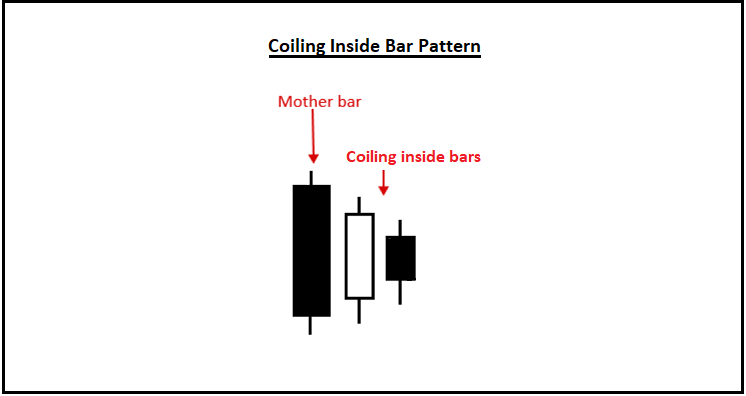 Nếu bạn nhìn thấy phía sau Mother Bar có nhiều Inside Bar và các nến đứng trước lần lượt bao trùm các nến đứng sau thì đây chính là dạng mô hình Inside Bar lồng vào nhau. Mô hình này cũng biểu hiện cho một lực nén giá lớn đang được tích lũy.