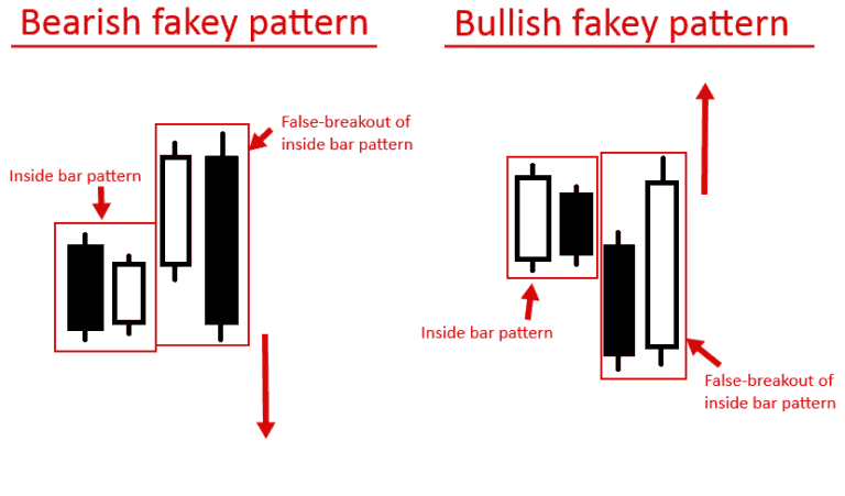Mô hình Fakey hình thành khi xuất hiện sự phá vỡ giá giả của thị trường, bạn có thể nhận biết nếu nhìn thấy trên biểu đồ giá xuất hiện một nến Inside Bar sau đó lại xuất hiện thêm nến đảo chiều khác thì đó chính là Fakey.