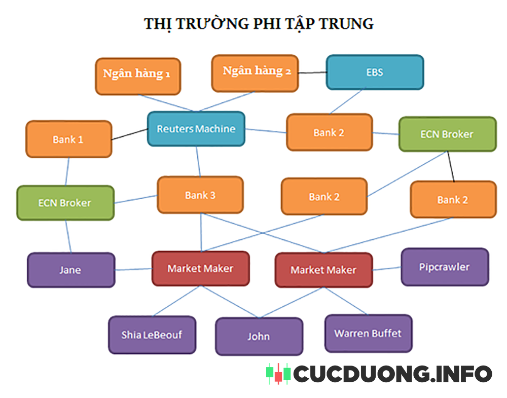 Đây là thị trường phi tập trung, tức là không có một sàn giao dịch cụ thể nào quản lý việc định giá, nghĩa là chúng ta sẽ có các mức giá khác nhau từ các đầu mối giá khác nhau