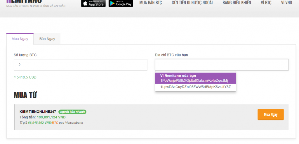 Các bạn nên chú ý là chọn mua về ví của sàn https://remitano.com/vn rồi mới chuyển sang ví sàn buôn coin, như thế nếu phát sinh tranh chấp phía remitano sẽ xử lý cho các bạn. Nhưng yên tâm, sàn lớn nhất thế giới, chuyện đó khó sảy ra lắm.