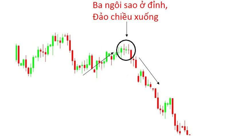 Trong mô hình này được chia ra thành hai dạng tương ứng là nến ba ngôi sao tại đỉnh và ba ngôi sao tại đáy.